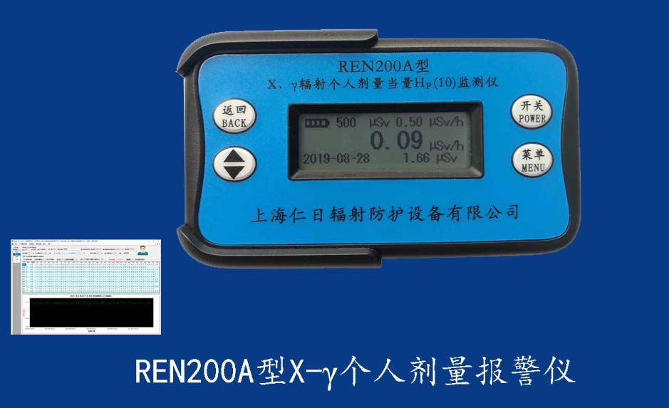 REN200A型X、γ輻射個(gè)人劑量當(dāng)量HP(10)監(jiān)測(cè)儀(簡(jiǎn)稱:個(gè)人劑量報(bào)警儀)內(nèi)置高靈敏度蓋格計(jì)數(shù)管為探測(cè)器,主要用來(lái)監(jiān)測(cè)各種放射性工作場(chǎng)所的X、γ以及硬β射線的輻射,具有響應(yīng)快,測(cè)量范圍寬的特點(diǎn)。能顯示工作場(chǎng)所的劑量當(dāng)量率和累積劑量,更換電池時(shí),日期及累積數(shù)據(jù)能永久保存。可選配RenRiPersonal個(gè)人劑量管理軟件,該軟件可存儲(chǔ)多個(gè)人的歷史數(shù)據(jù),能記錄日累積、月累積、年累積、輻照時(shí)長(zhǎng)、計(jì)算平均劑量率、扣除或不扣除本底輻射,且以文字和圖譜的方式展現(xiàn)數(shù)據(jù)。廣泛應(yīng)用于核電站、加速器、鋼鐵、化工、同位素應(yīng)用、工業(yè)X、γ無(wú)損探傷、放射醫(yī)療、鈷源治療、γ輻照、放射性實(shí)驗(yàn)室、核設(shè)施周圍環(huán)境監(jiān)測(cè)等領(lǐng)域中的工作人員進(jìn)行個(gè)人安全防護(hù)監(jiān)測(cè)及放射性提示。&nb